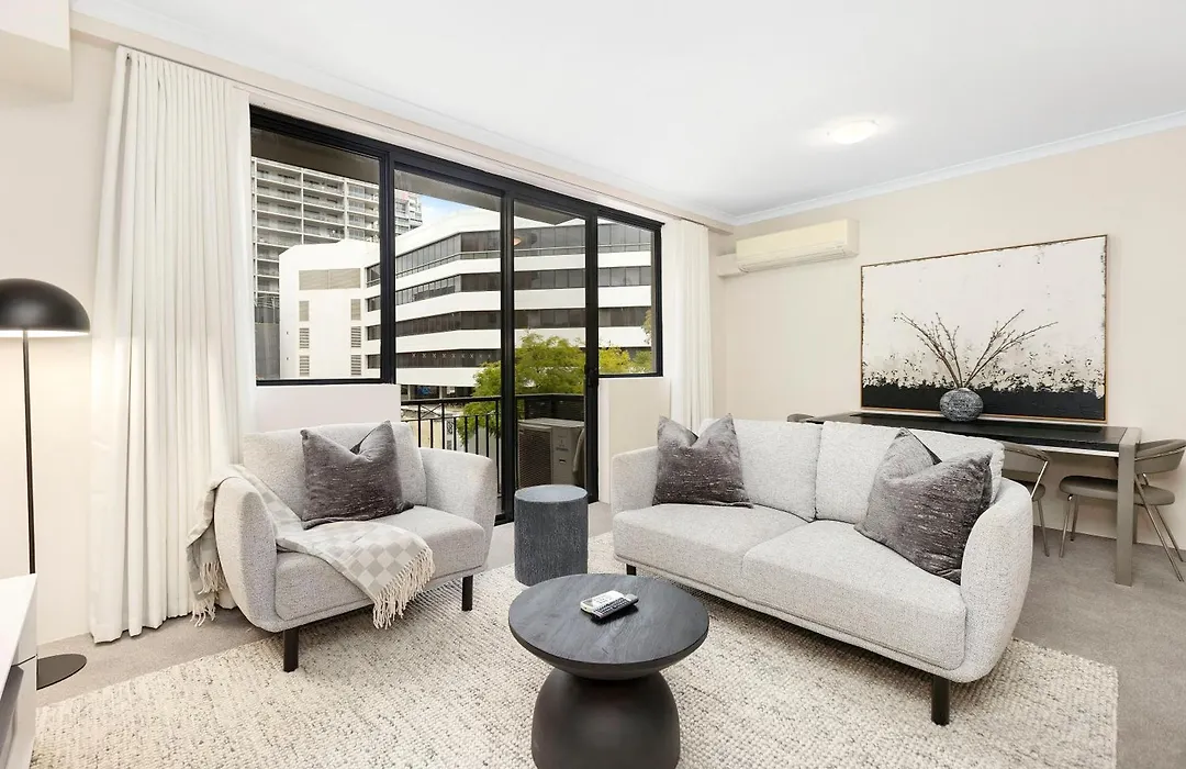 הדירה Executive Elegance Stylish 1Br Suite On Hay St סופרת 1 חדרי שינה. ישנם 1 חדרי אמבטיה זמינים.